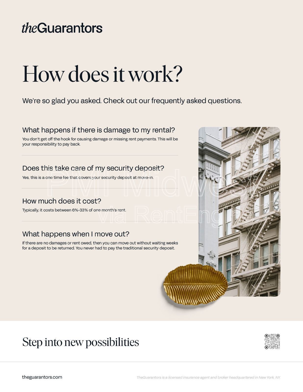 Deposit varies based on screening results. Rent Guarantee policy from the Guarantors required.
